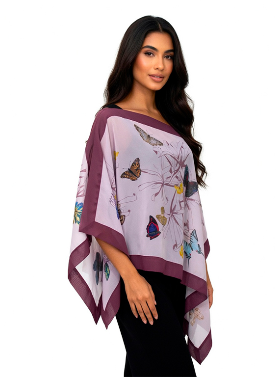 Es una prenda versatil que funciona como blusa , manta o chal, con dos puntos de union sobre los hombros, agreagndo un aire transformable y poetico.